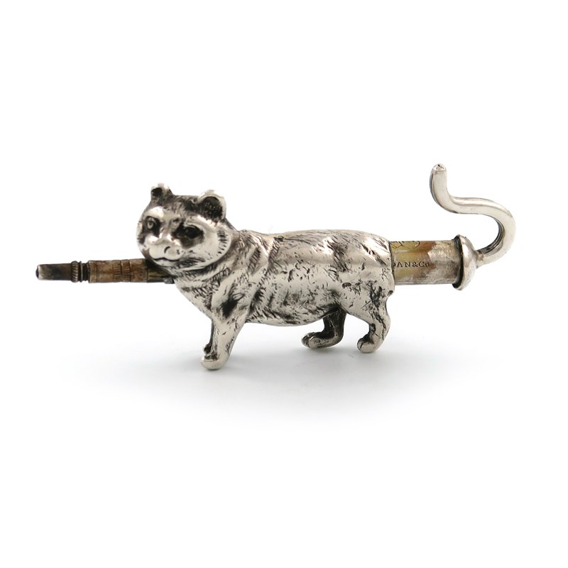 A Victorian novelty silver cat propelling pencil
