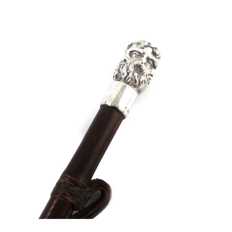 the handle modelled as continuous bearded male heads, plain mount, length 80.5cm.