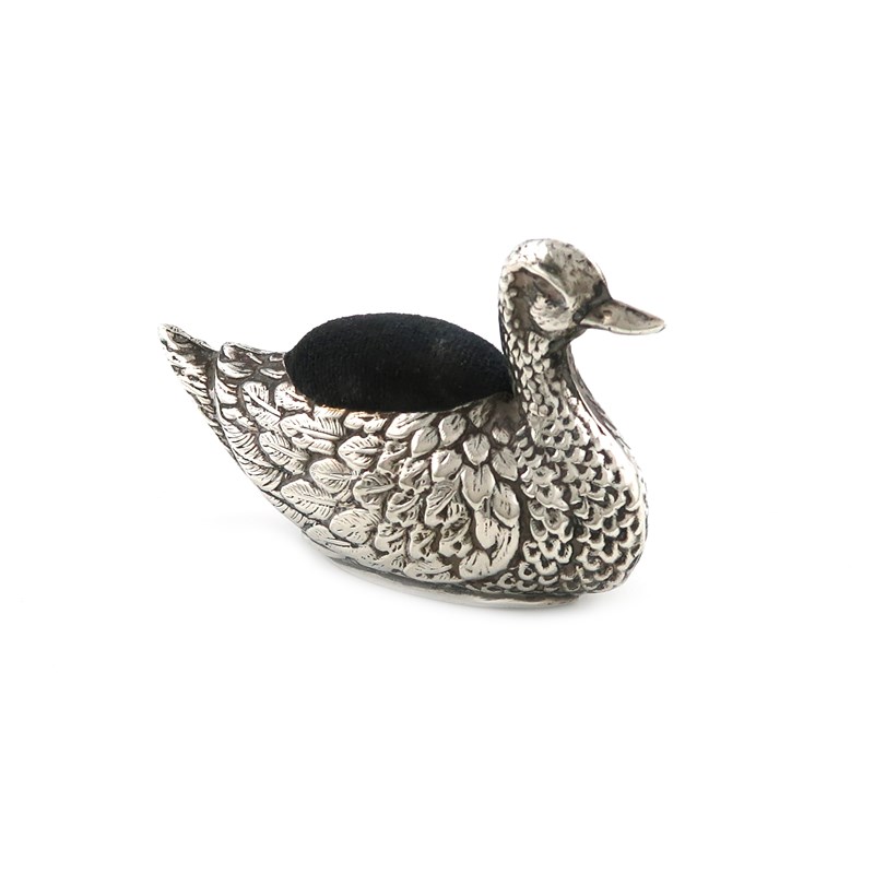 A novelty silver duck pin cushion