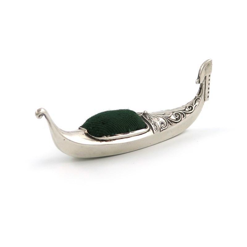 An Edwardian novelty silver gondola pin cushion