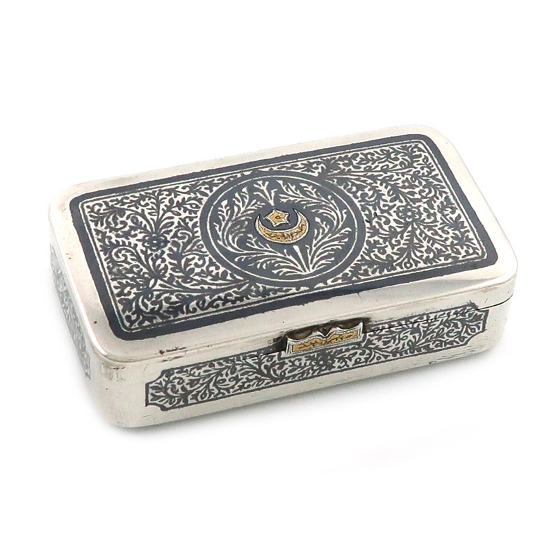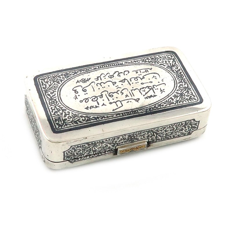 An Islamic silver and niello-work snuff box