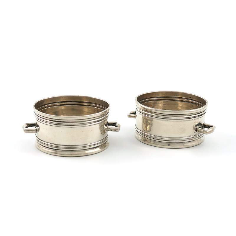 circular form, side handles, diameter 6cm, approx. weight 2.5oz. (2)