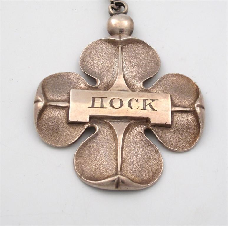 clover leaf form, matted decoration, incised 'HOCK', width 5.3cm, approx. weight 1.1oz.