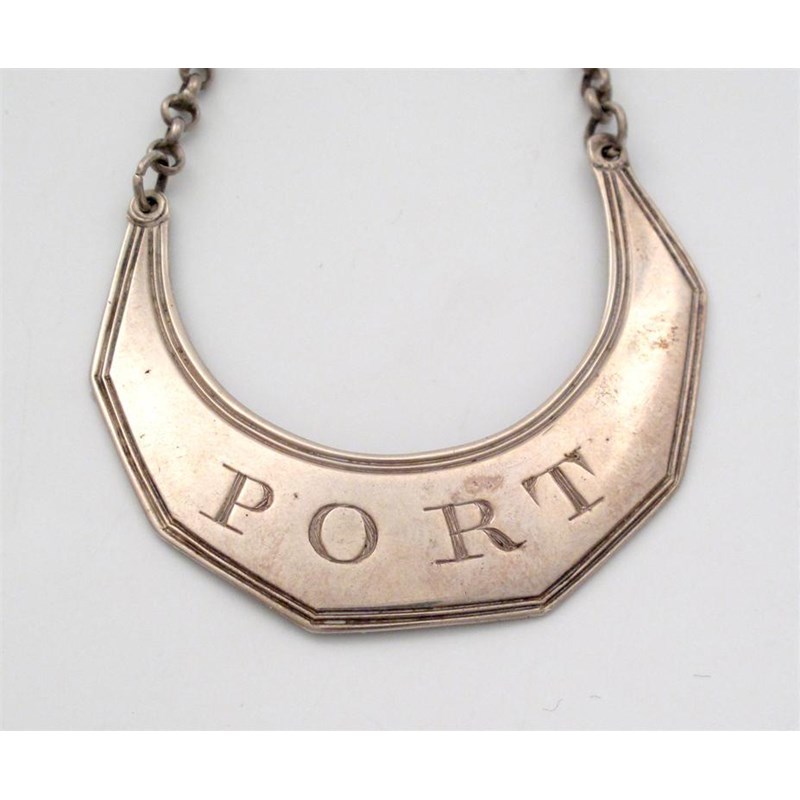 crescent form, reeded border, incised 'PORT', length 5cm.