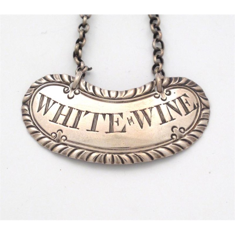kidney shape, feather edge border, incised 'WHITE WINE', length 4.8cm.