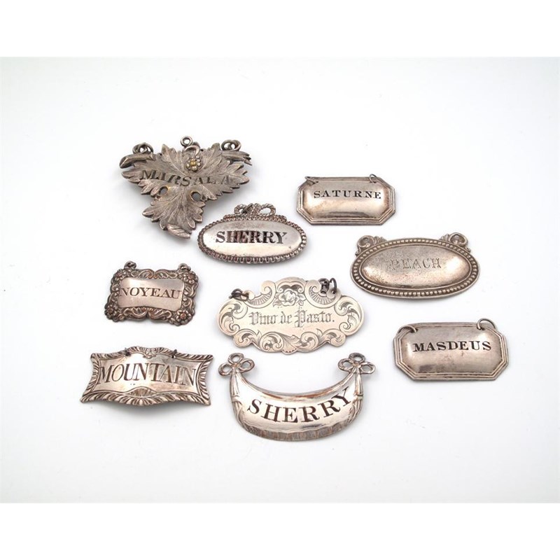 A collection of old Sheffield plated and electroplated wine labels,