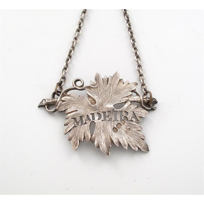A George IV silver vine leaf wine label,
