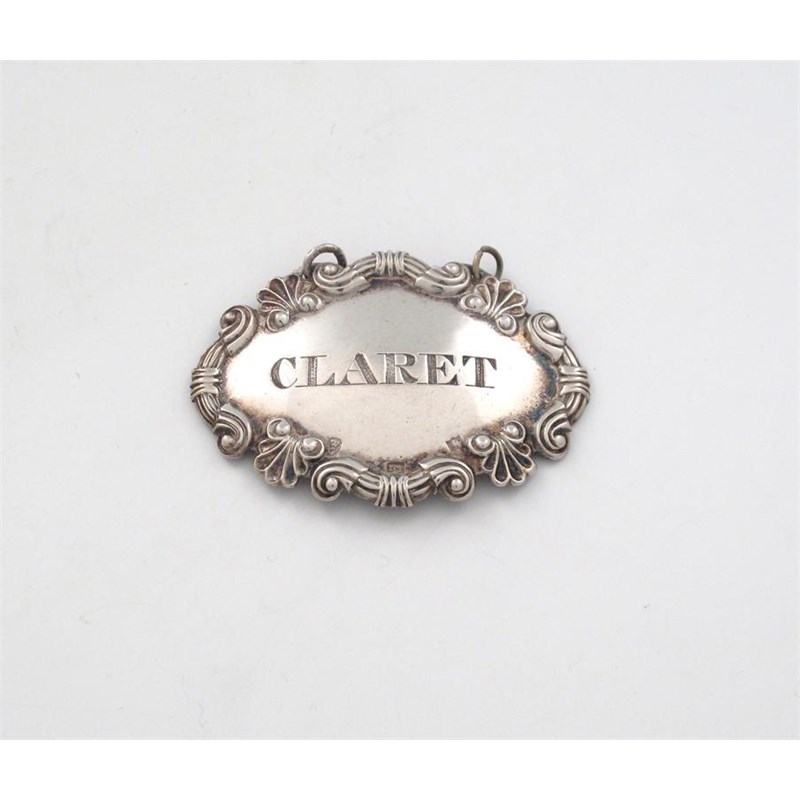 shaped oval form, fluted scroll and shell border, incised 'CLARET', length 5.4cm.