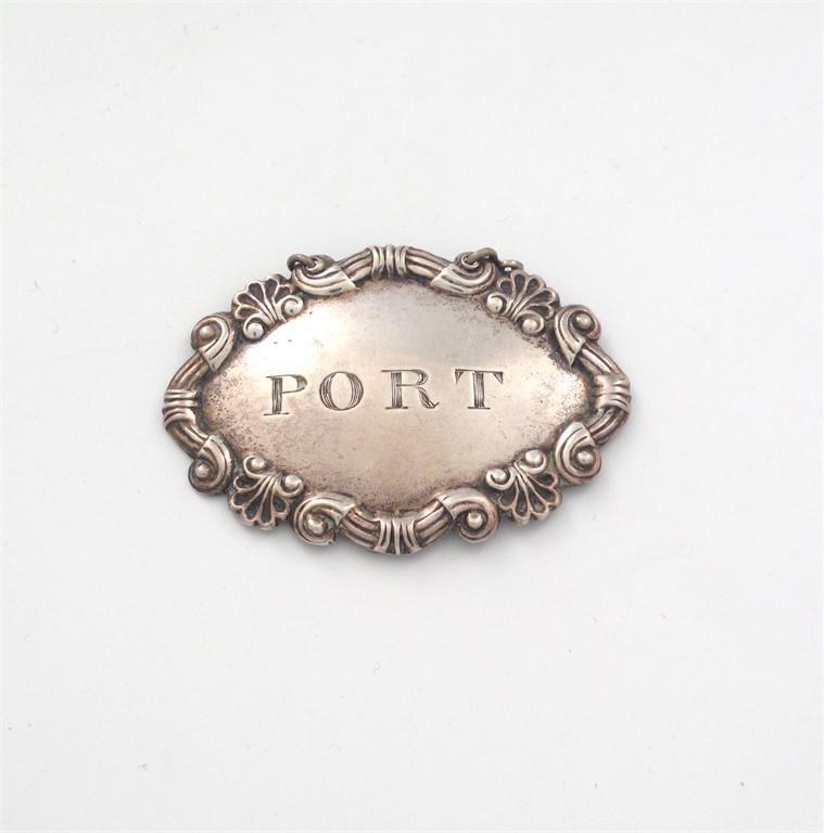 shaped oval form, fluted scroll and shell border, incised 'PORT', length 5.4cm.