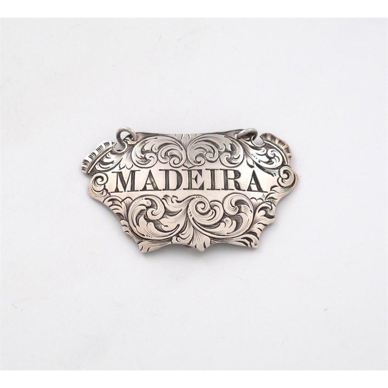 cartouche form, engraved foliate scroll decoration, incised 'MADEIRA', length 5.4cm.