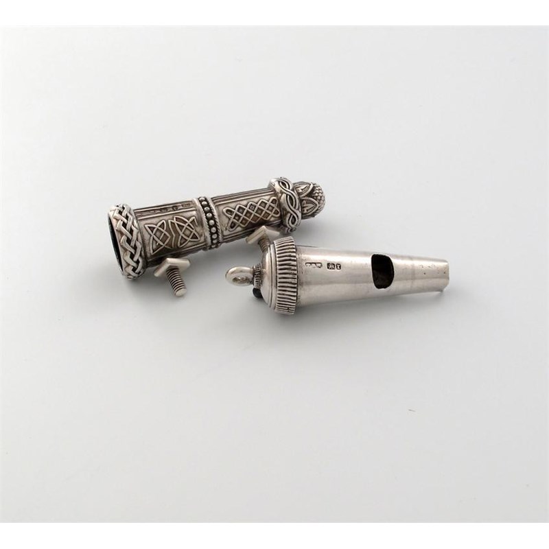 tapering circular form, the cased with inter-twined decoration, length 7.3cm, approx. weight 1oz.