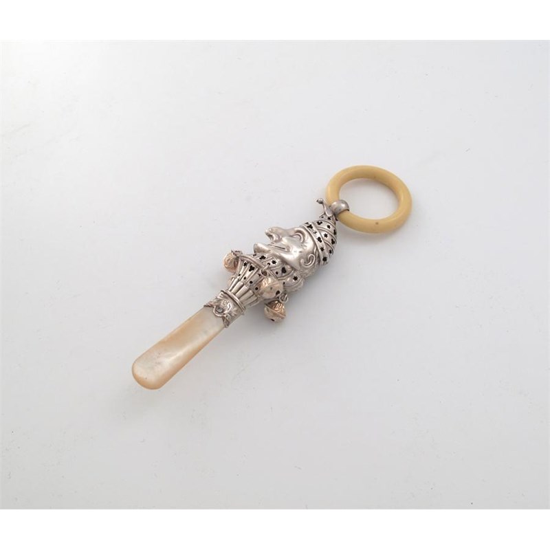 An Edwardian silver novelty baby's rattle modelled as Mr Punch,