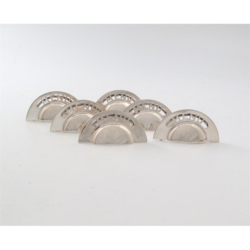 semi-circular form, pierced 'MENU', wire-work support, approx. weight 3oz. (6)