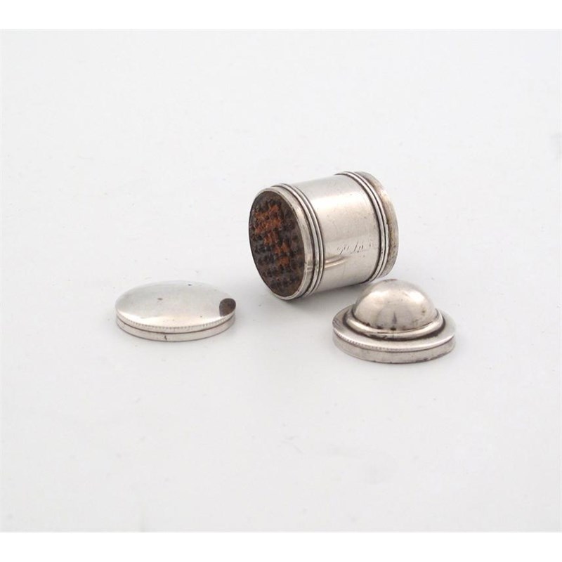 cylindrical form, domed pull-off cover, height 3.2cm, approx. weight 0.5oz.