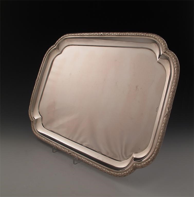 shaped rectangular form, ribbon tied husk border, length 42cm, approx. weight 32oz.
