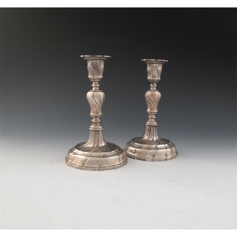 on raised fluted circular bases, fluted baluster stems, height 18cm.(2)