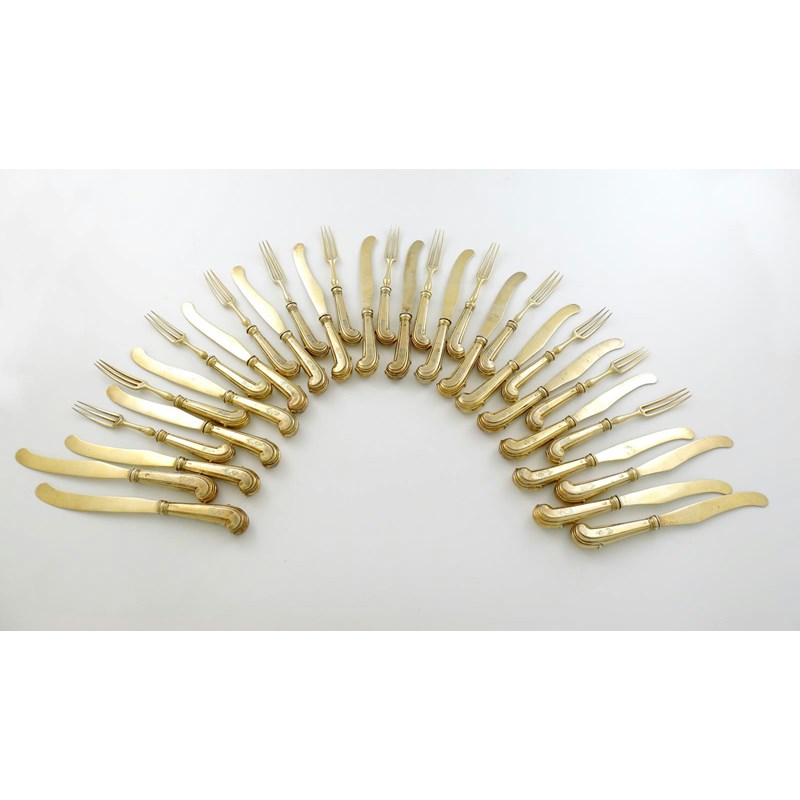 A set of nineteen George III silver-gilt dessert knives and thirteen dessert forks