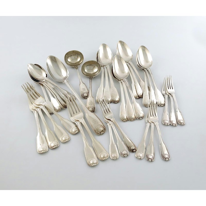 A George III silver Fiddle, Thread and Shell pattern part canteen,