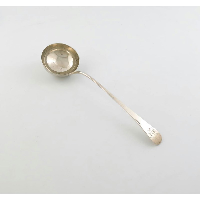 A George III provincial silver Old English pattern soup ladle