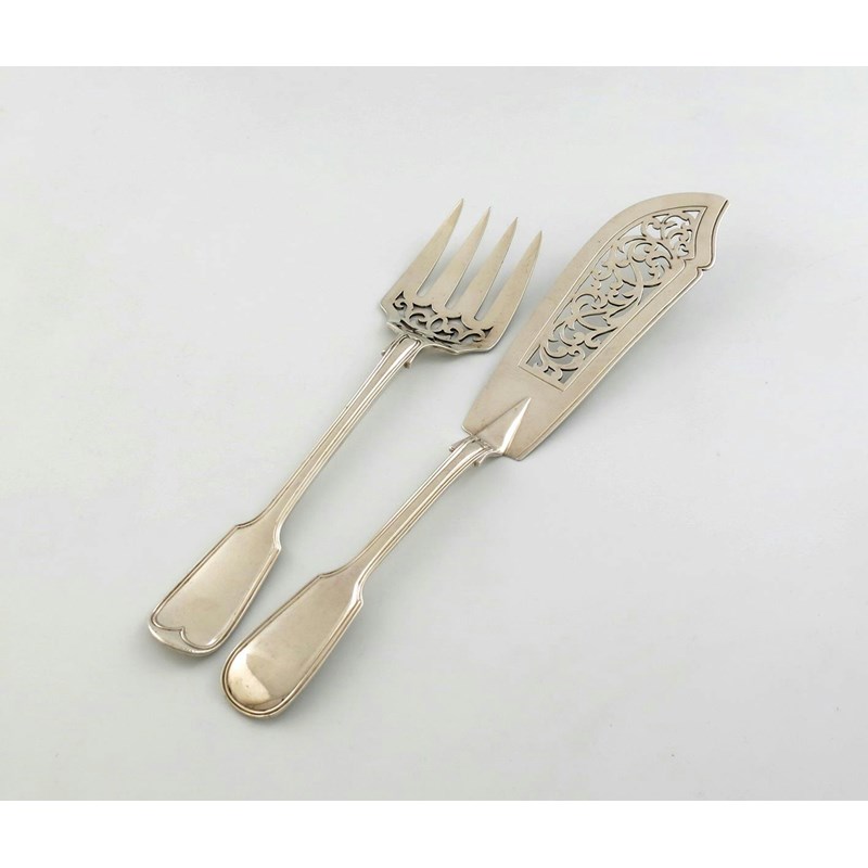 A pair of Victorian silver Fiddle and Thread pattern fish servers,