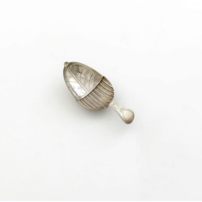 acorn shaped bowl with engraved and fluted decoration, engraved handle, length 7.5cm, approx. weight 0.3oz.