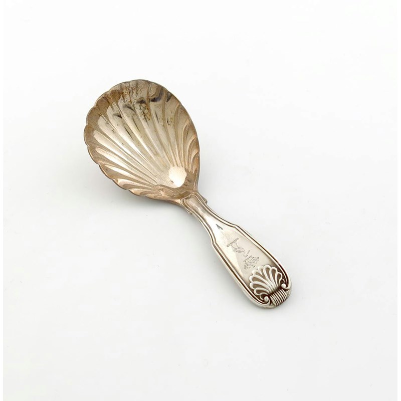 fluted shell bowl, the terminal engraved with a crest and coronet, length 10.1cm, approx. weight 0.9oz