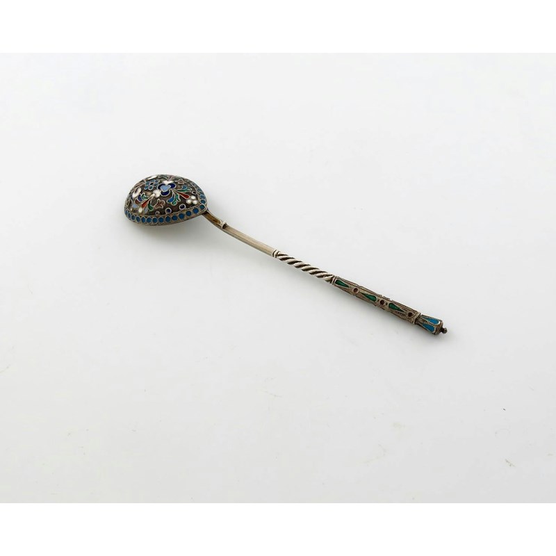 with vari-coloured foliate enamel decoration, twisted stem, length 13.8cm, approx. weight 0.7oz.