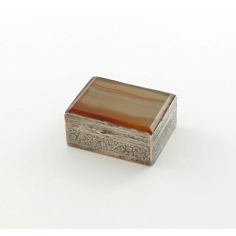 An Indian silver-mounted agate snuff box