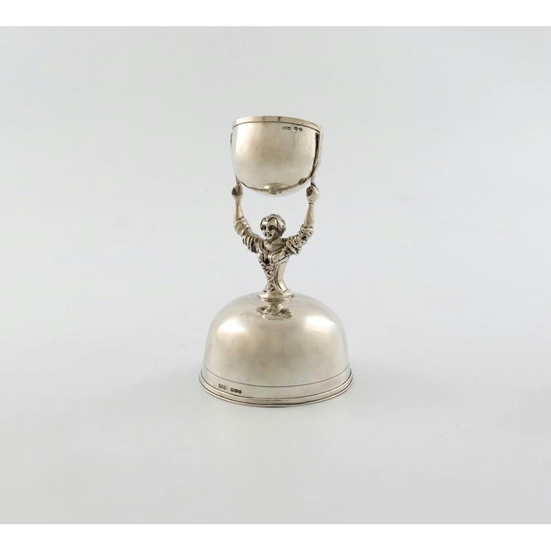 modelled as a maiden holding a hinged cup, circular base, height 13.2cm, approx. weight 4.4oz.