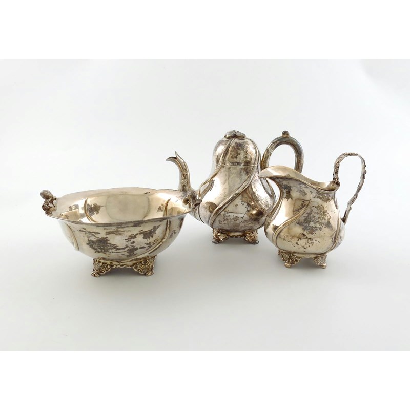 A matched 19th century three-piece Dutch silver strawberry tea set