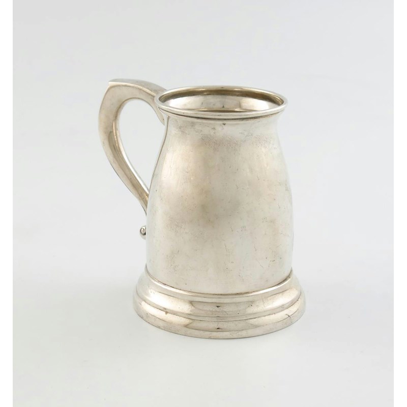 baluster form, scroll handle, on a raised circular foot, height 10cm, approx. weight 8oz.