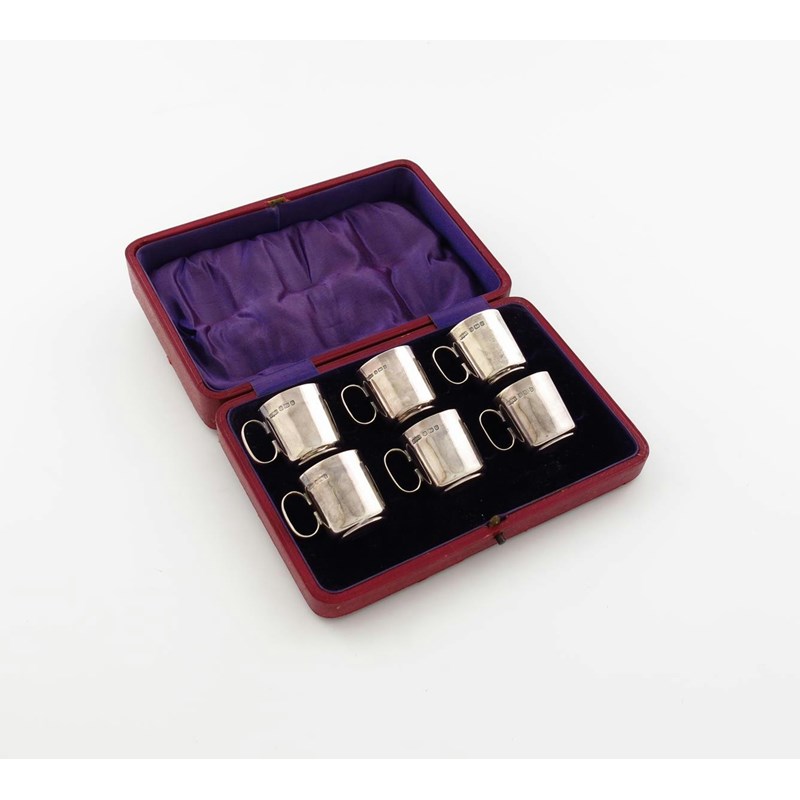 circular form, scroll handles, in a fitted case, height 3.6oz, approx. weight 5oz.