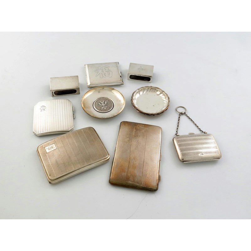 comprising: a Chinese compact, three cigarette cases, a purse, two match box, covers, and four ashtrays, approx. weight 30oz. (11)