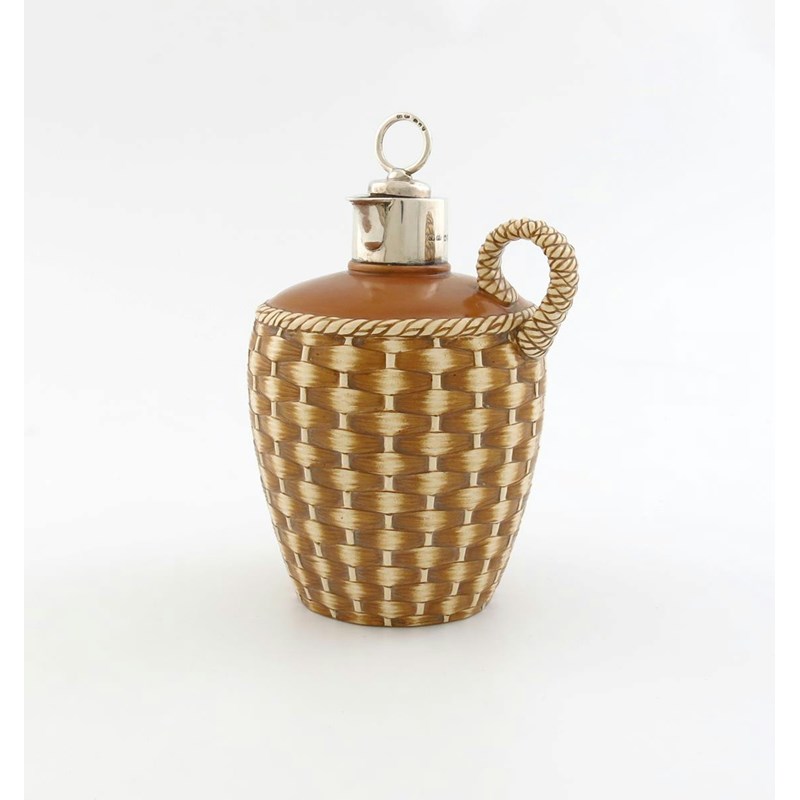 plain mounts with a ring-handled stopper, simulated wicker-bound ceramic body, height 18cm.