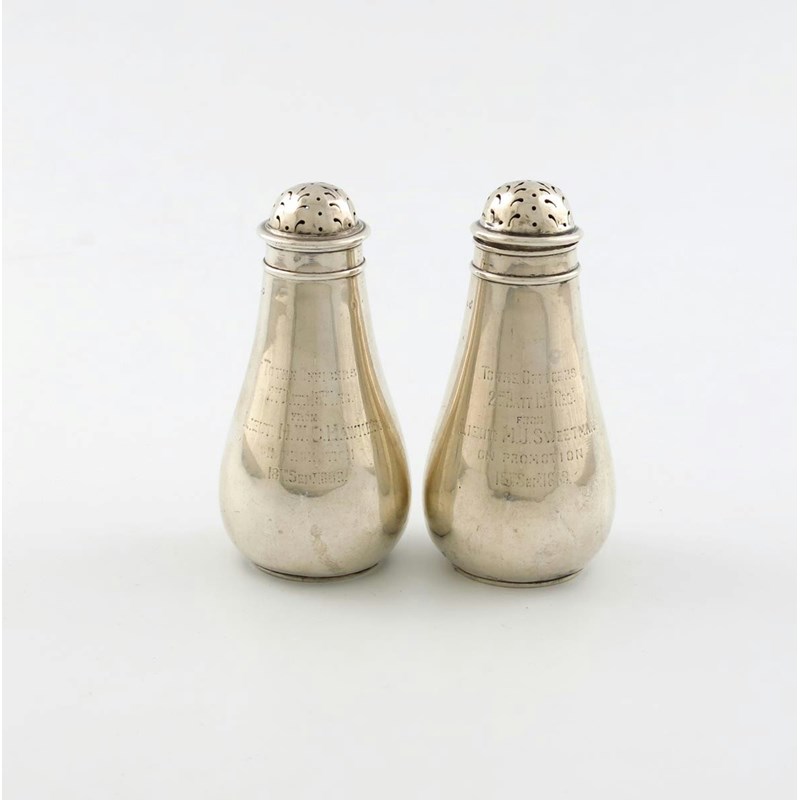 A pair of Victorian regimental silver pepper pots