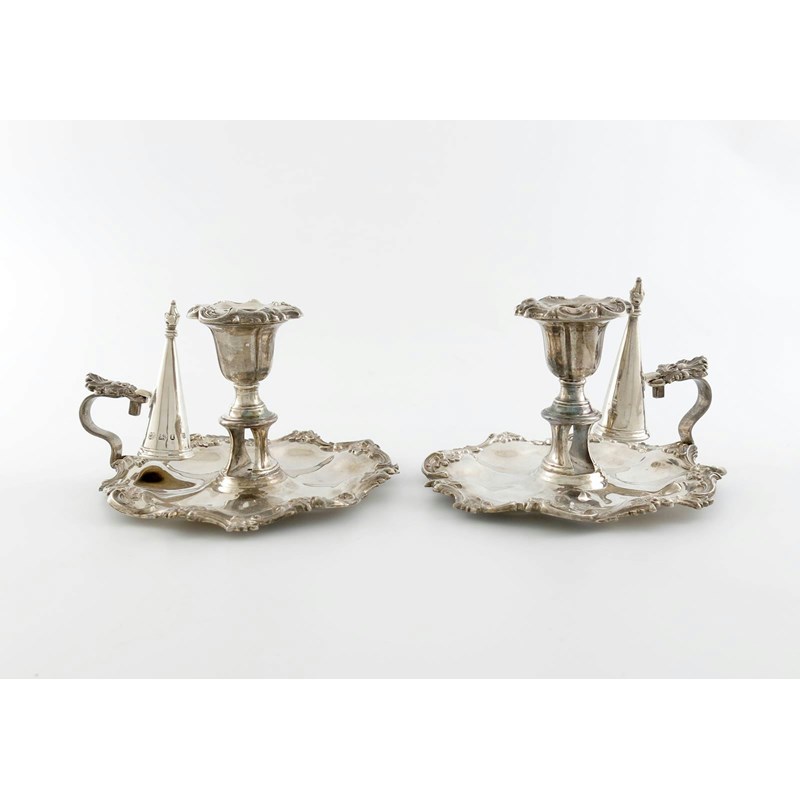 A pair of William IV silver chamber sticks