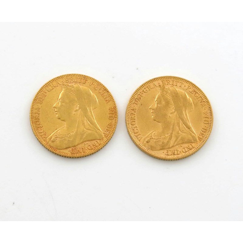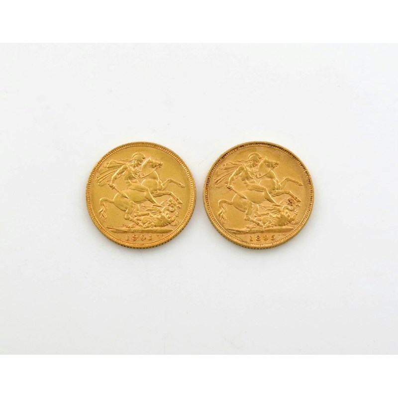 Victoria, Old head coinage, gold Sovereigns (2), 1895 M, 1901. Very fine. (2)