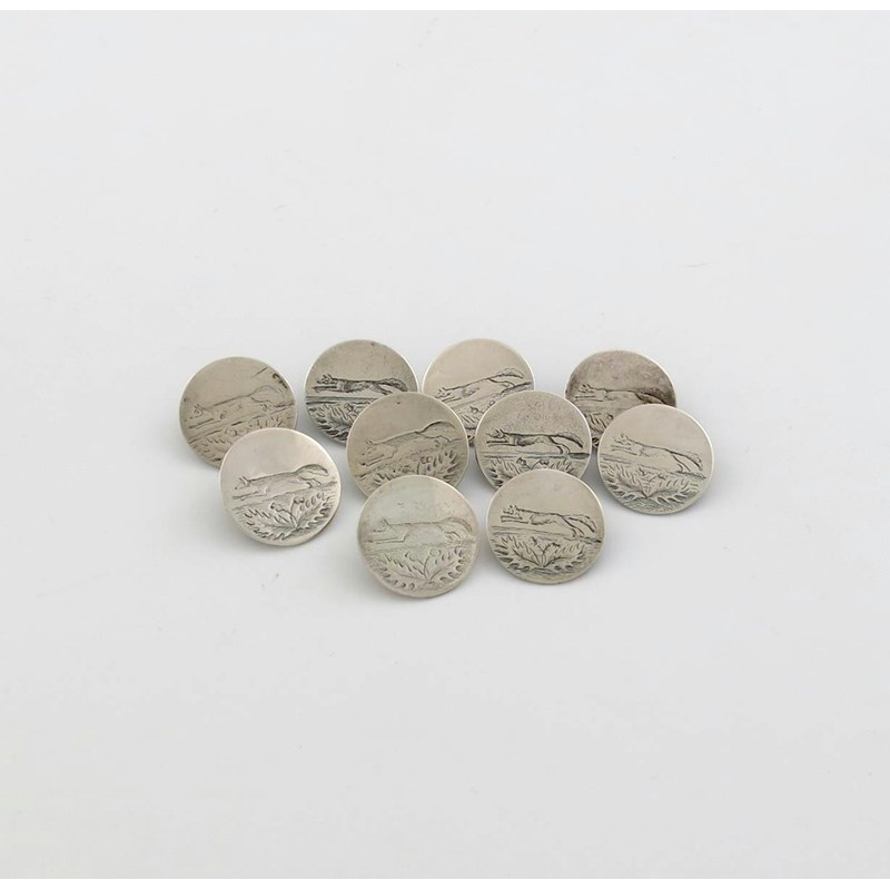 circular form, each engraved with a running fox above a thistle, diameter 2.4cm. (10)