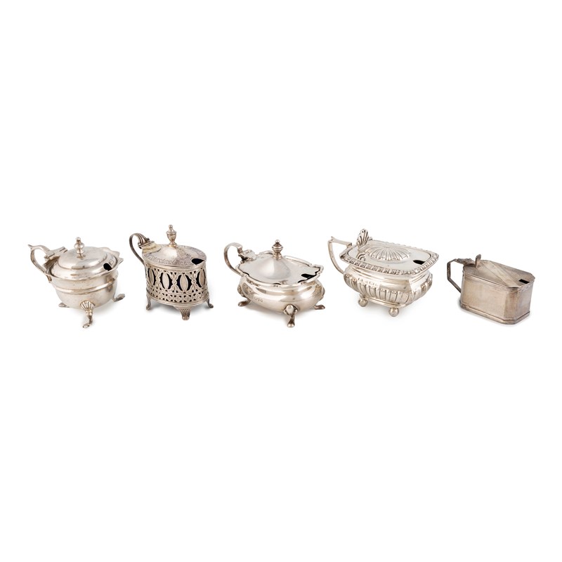 A collection of antique silver mustard pots,