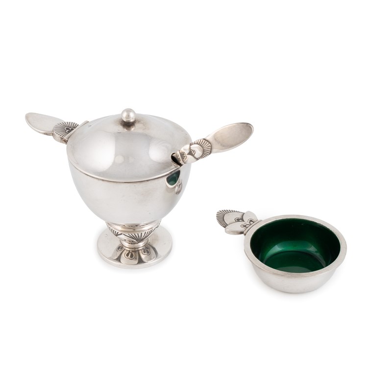 Designed by Gundorph Albertus for Georg Jensen, a Danish Cactus pattern silver mustard pot and salt