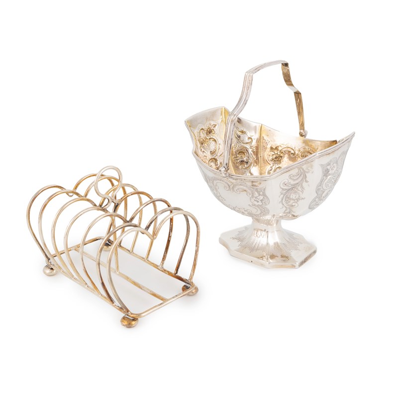 A George III silver swing-handled sugar basket,