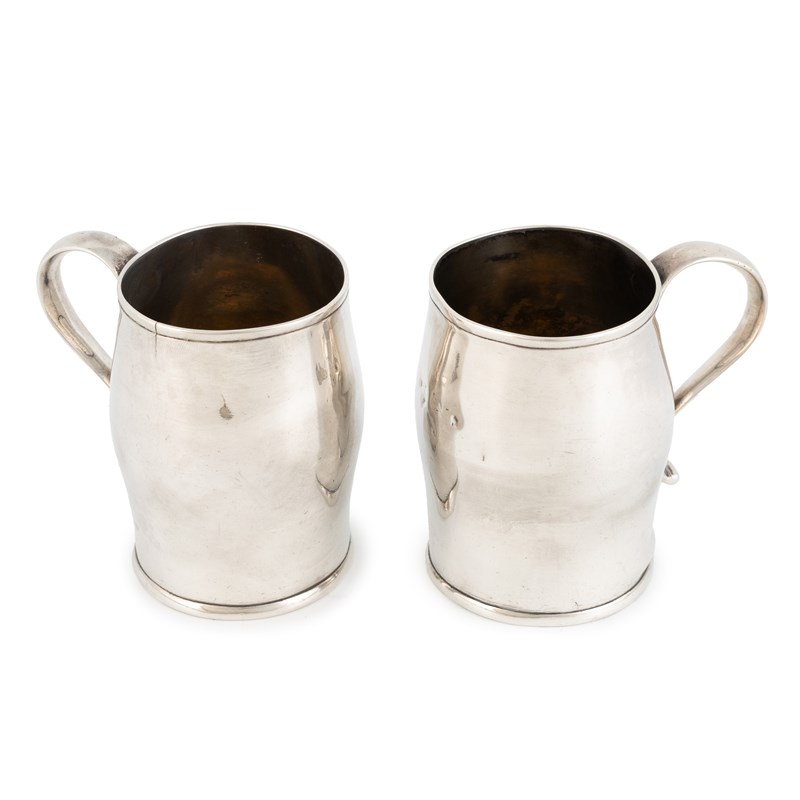 baluster form, scroll handles, gilded interiors, height 7.8cm, approx. weight 8.4oz. (2)