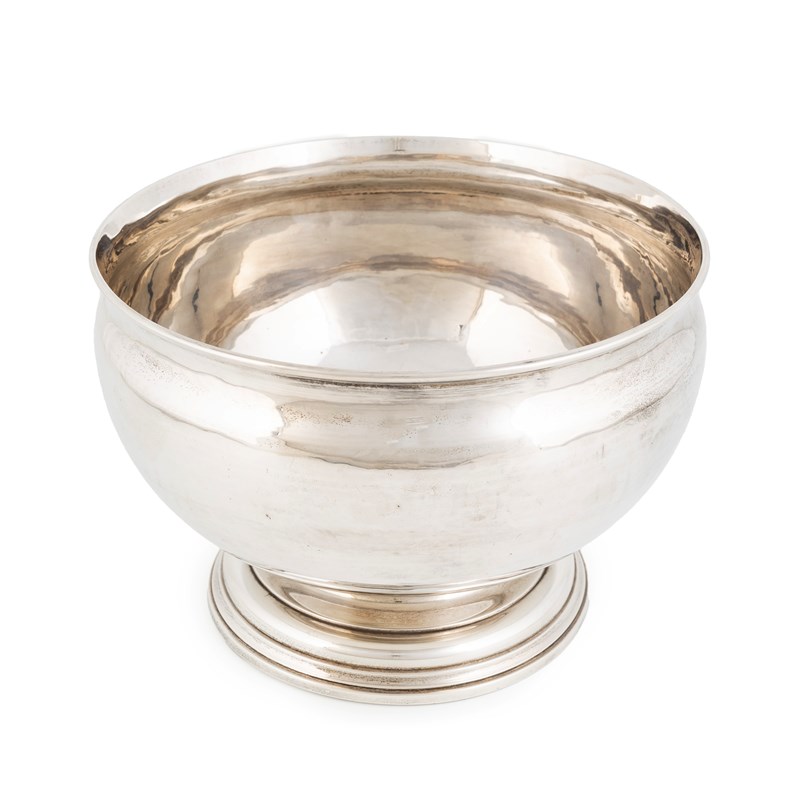plain circular form, on a raised circular foot, diameter 22.5cm, approx. weight 33oz.