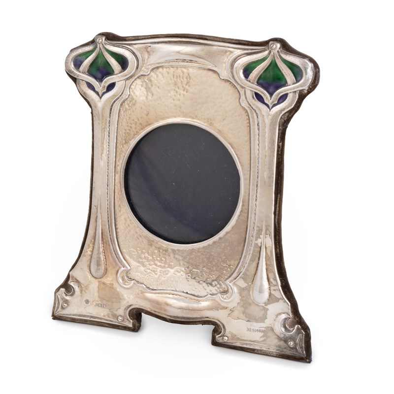 An Edwardian Art Nouveau silver and enamel photograph frame,