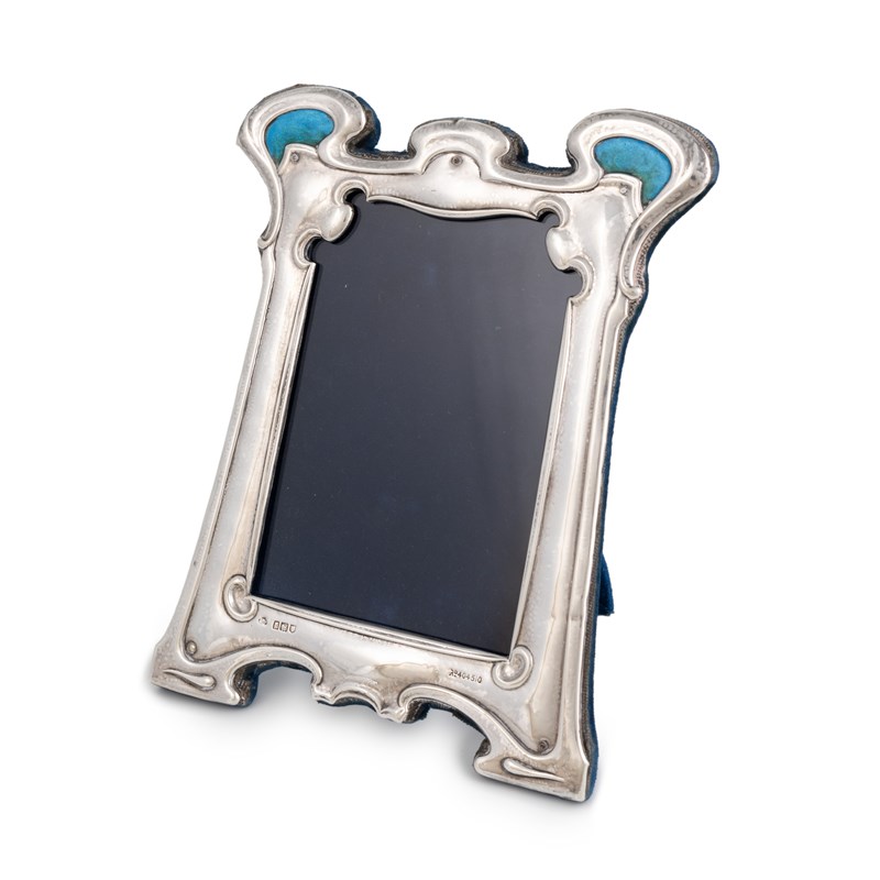 An Edwardian Art Nouveau silver and enamel photograph frame,