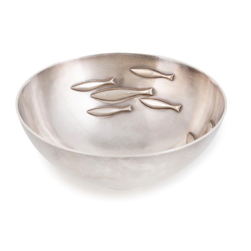 Φ By Graham Stewart, a modern Scottish Britannia standard silver swimming fish bowl,