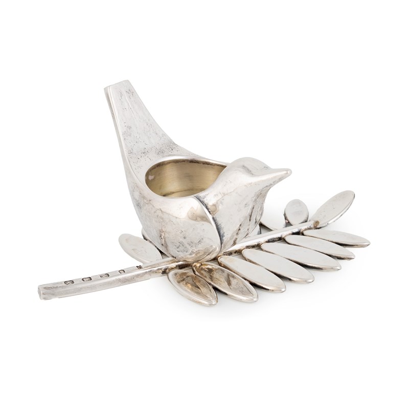 modelled as a detachable bird sitting on a rowan tree branch, length 15.8cm, approx. weight 23.2oz.