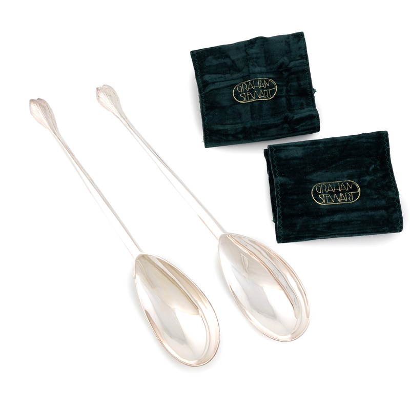 By Graham Stewart, a pair of modern Scottish silver serving spoons,