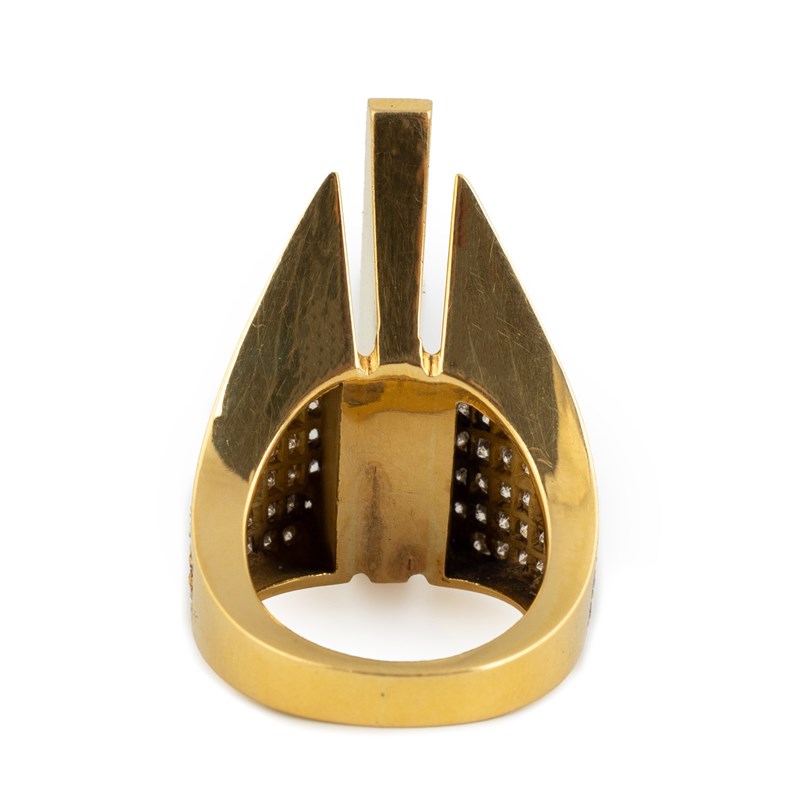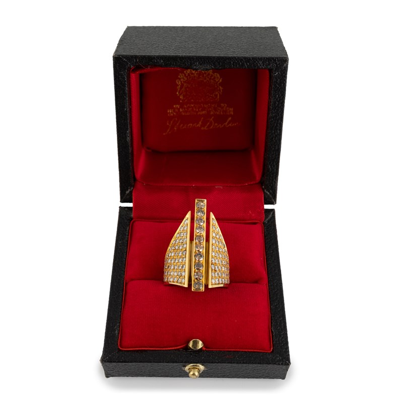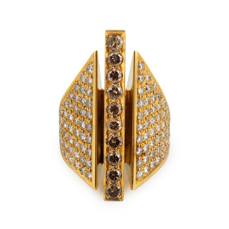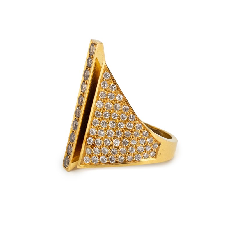 By Stuart Devlin, a modern 18-carat gold and diamond mitre ring,