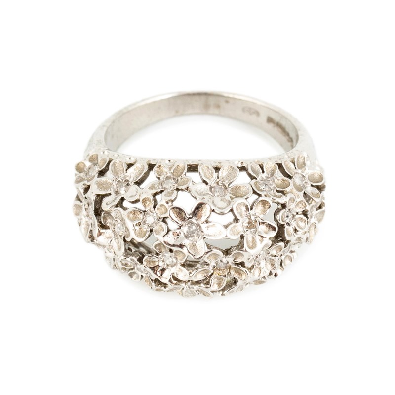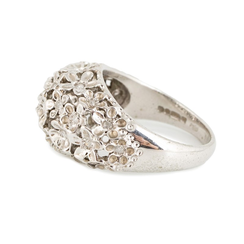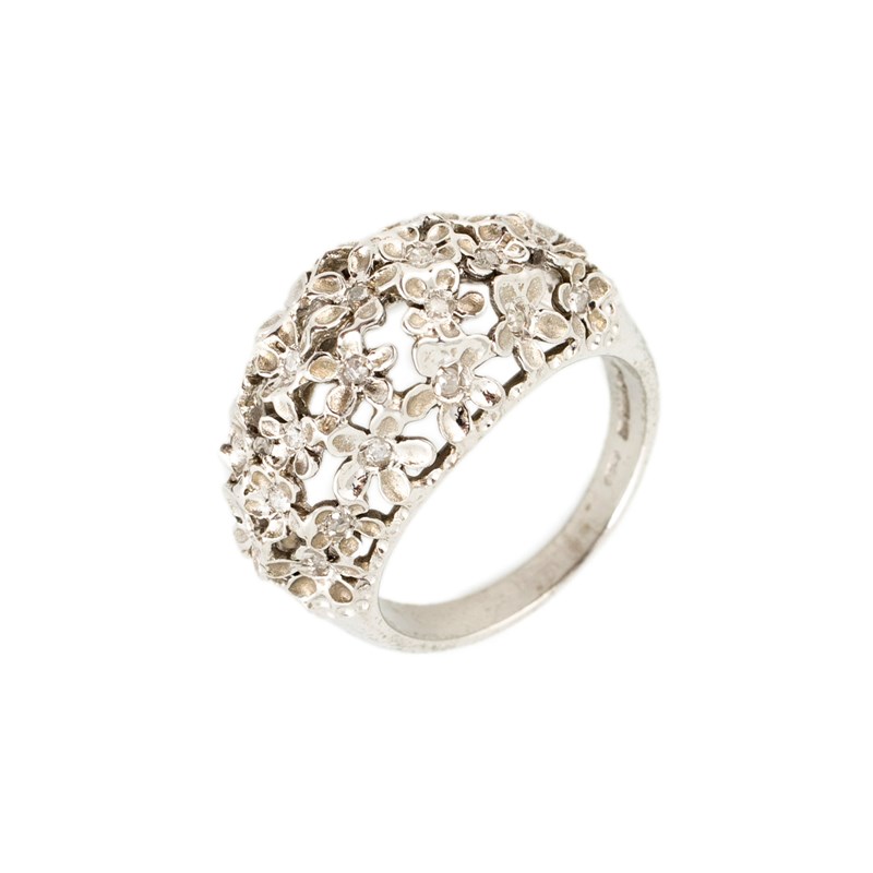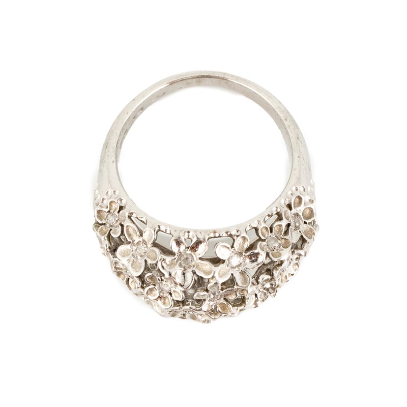 By Stuart Devlin, a modern 18-carat white gold and diamond flower ring,